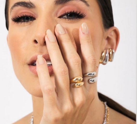 Coleção Golden Aurora Chic, o Anel Capri possui um design moderno, banhados a ouro e a prata.